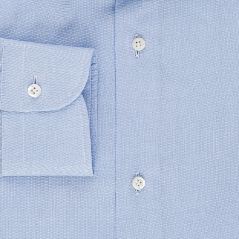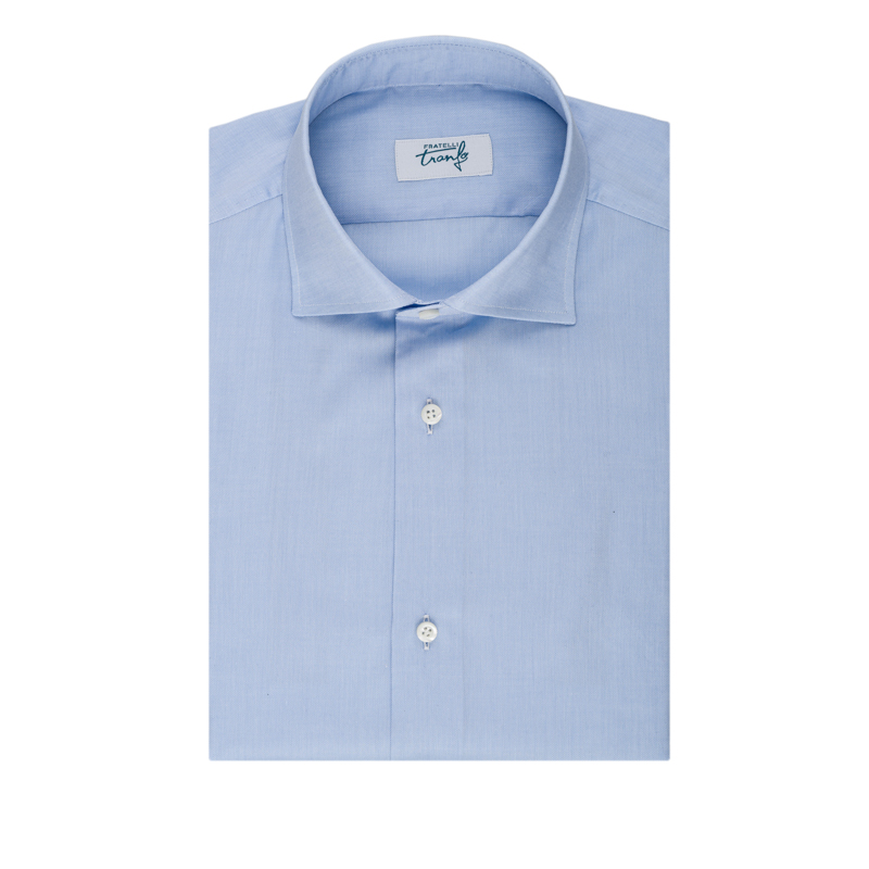 La camicia in tessuto oxford di colore celeste dei Fratelli Tranfo è un capo elegante e raffinato, realizzato con una cura artigianale che la distingue.