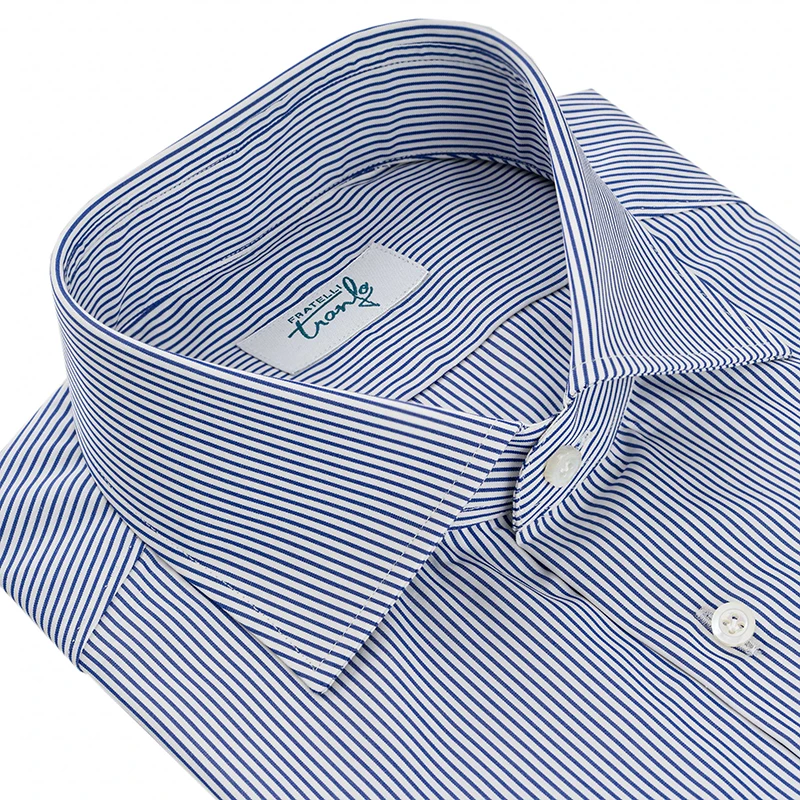 Realizzata con cotone rigato di alta qualità nel classico colore blu, questa camicia è elegante e versatile, perfetta per qualsiasi occasione.